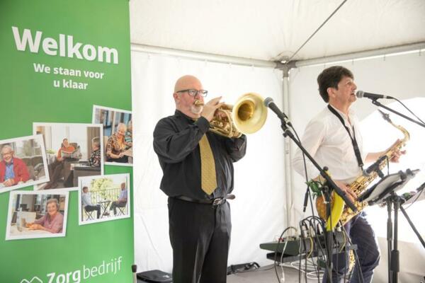 De feestelijke middag begon met een toespraak van buurtzorgmanager Micheline Bastiaans, gevolgd door een receptie met overheerlijke hapjes. Deze hele namiddag werd swingend begeleid door de J&D Band. Bewoonster Viviane mocht zelfs enkele nummers meezingen.
