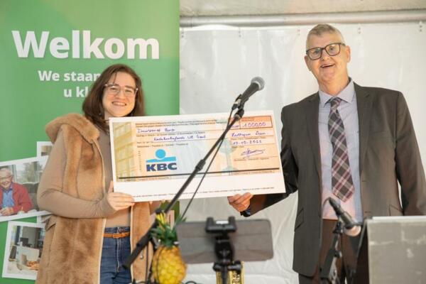 In de loop van namiddag waren er ook rondleidingen in een modelflat. Daaruit bleek heel wat interesse in de assistentiewoningen. Een leuke verrassing van deze dag was de cheque van 1.000 euro die werd overhandigd aan het Kankerfonds, een mooi bedrag ingezameld door de bewoners.