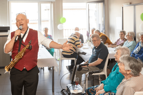 De feestelijke middag begon met een toespraak van woonassistente Rakela en de lokale schepen Grietje Cortebeek, gevolgd door een receptie met overheerlijke hapjes. Deze hele namiddag werd swingend begeleid door de J&D Band.
