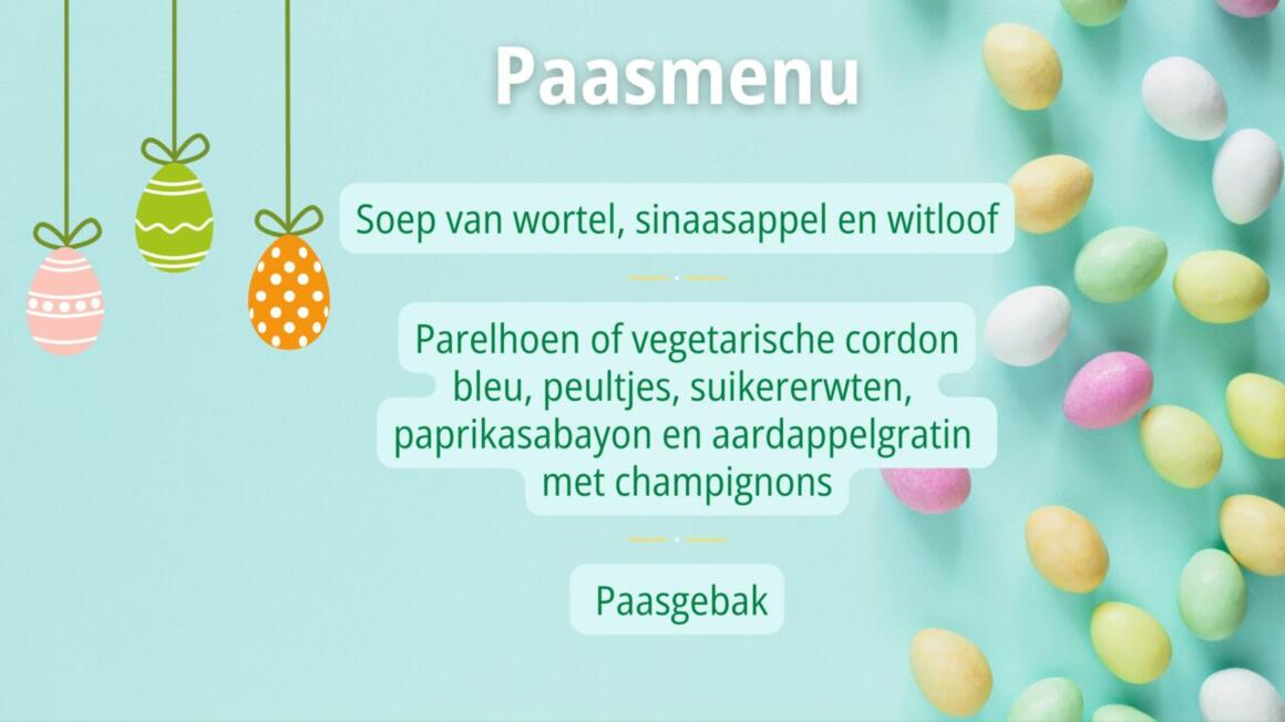 - 9 april - Paasmenu in assistentiewoningen Molenhoek in Duffel