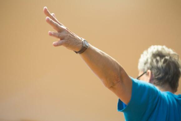 Het 4e leerjaar van basisschool 't Hinkelpad komen ons bezoeken en geven een lesje stoelyoga.